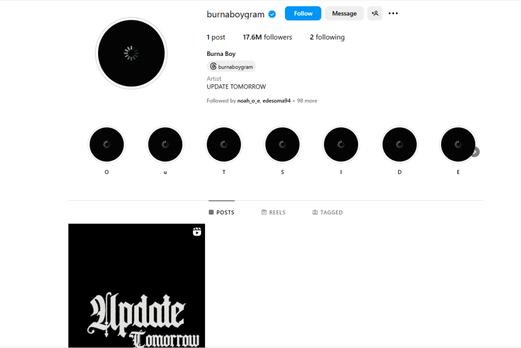 While Burna Boy is yet to address the Instagram purge, his actions have left many wondering about the reason behind the sudden social media cleanse.