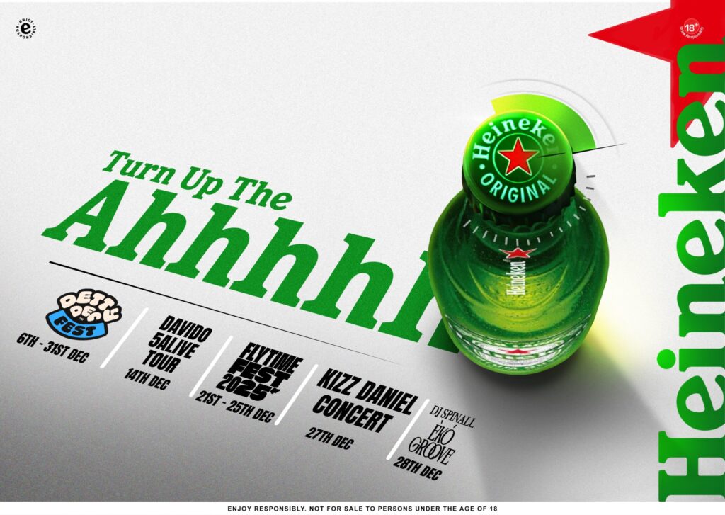 From Monday, December 22 to Thursday, December 25, Heineken will power Flytime Fest at the Eko Convention Center, the annual cultural celebration that sets the rhythm for December in Lagos. This year’s lineup features Flavour on Day 1, Olamide on Day 2, Asake on Day 3, and Davido closing out the festival on Day 4, Christmas Day. Across all four days, consumers can expect immersive brand moments curated the Heineken way—smooth, refreshing, and designed to keep the energy high from start to finish.