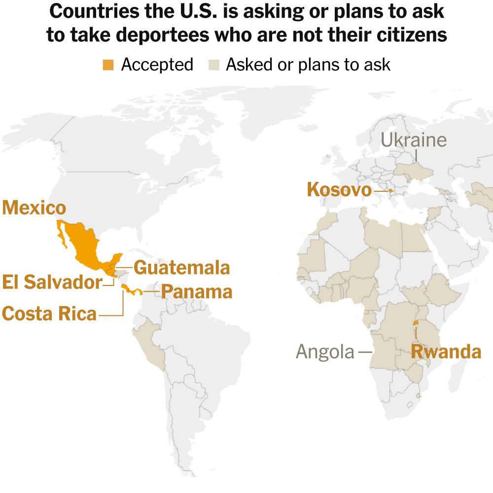 The administration is pushing nations around the world, including ones at war, to take people expelled by the U.S. government who are not citizens of those countries.