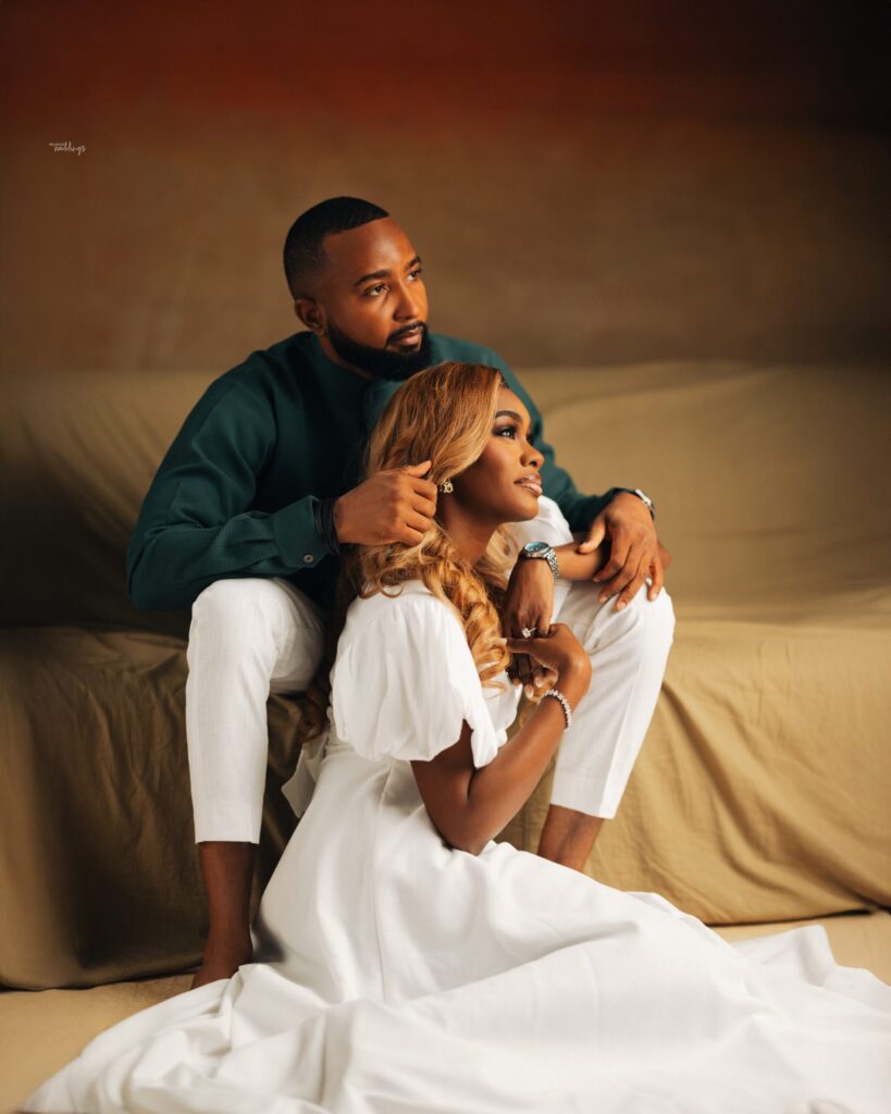The beauty of their love shines effortlessly through these stunning pre-wedding photos, and we can’t get enough. As they prepare to embark on their forever journey together, we are delighted to share in their celebration. Yagana is absolutely radiant, transitioning gracefully from an elegant white dress to a vibrant Kanuri traditional ensemble, while Assadigi complements her beautifully in his crisp, refined kaftan. Their photos are infused with much elegance and cultural richness, showcasing the magnificent blend of love and culture — and we are truly captivated by how beautifully tradition and romance intertwine in their story.