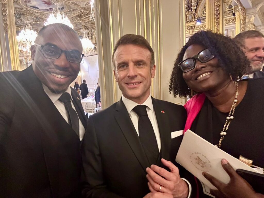 Mbuotidem Johnson, a trailblazing leader in Africa’s digital creative industries, was honoured to represent Nigeria at a prestigious state dinner hosted by French President Emmanuel Macron and First Lady Brigitte Macron in Paris. The high-profile event celebrated the growing diplomatic and cultural ties between Nigeria and France, with Mbuotidem standing alongside other notable Nigerian figures, including business magnates Aliko Dangote, Tony Elumelu, Jim Ovia, and Abdul Samad Rabiu, and Nigerian Minister Dr. Jumoke Oluwole and Hannah Musa Musawa.