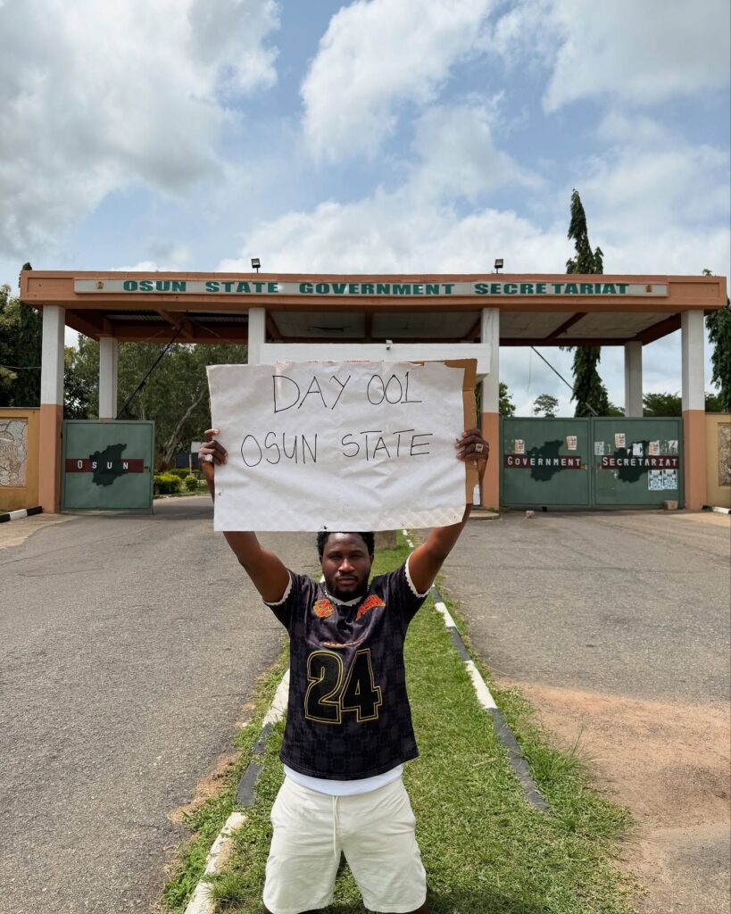He revealed this intention in a post on his Instagram account where he was pictured holding a placard in front of the Osun State Government Secretariat, which kicked off the campaign.