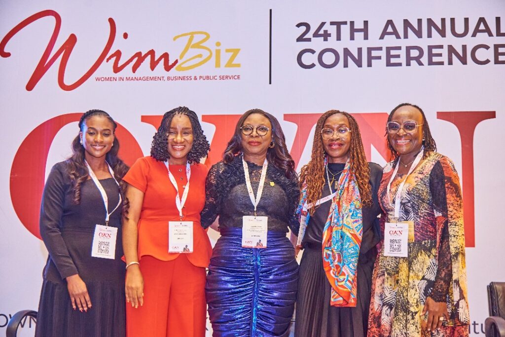 L-R: Executive Director, General Entertainment Channels, Multichoice, Dr. Busola Tejumola; Managing Director, African Global Citizen, Ifeoma Chuks-Adizue; Division Head, Quantity Surveying Federal Ministry of Works & Housing (Housing Sector), Abuja, Dr. Celestina Eke; Director, Corporate Affairs & Sustainability, Nigerian Bottling Company Ltd, Dr. Oluwasoromidayo George and Citizen Treasury Manager, Total Energies EP Nigeria, Hilda Manyo-Dickson during the 24th Women in Management, Business and Public service (WIMBIZ) Annual Conference held at Eko Hotels and Suites, Victoria Island, Lagos on Thursday.
