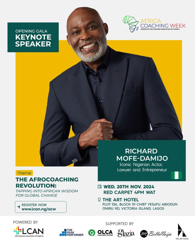 The Life Coaches Association of Nigeria (LCAN) is set to host its most vibrant Africa Coaching Week (ACW) yet, with legendary actor and business leader Richard Mofe Damijo (RMD) headlining the flagship conference. Themed “The AfroCoaching Revolution: Tapping into African Wisdom for Global Change,” ACW 2024 will be a fusion of tradition, innovation, and impactful