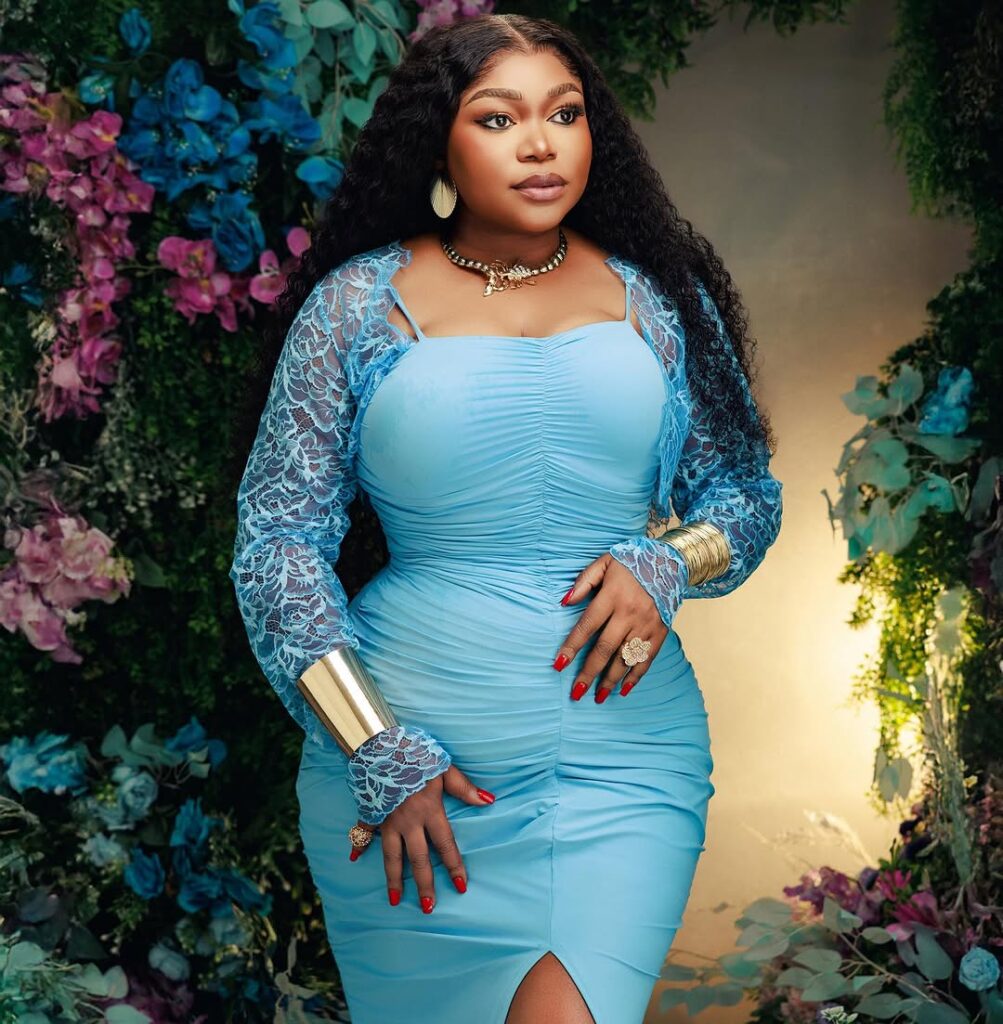 Birthdays with colourful outfits? Absolutely. Ruth Kadiri is celebrating her birthday wrapped in colour. The Nollywood queen, who turns 37 today, stuns in two striking looks: deep purple and ocean blue, each shade bringing its own energy. For her first look, she wore a purple blazer dress, pairing it with sheer black tights and white