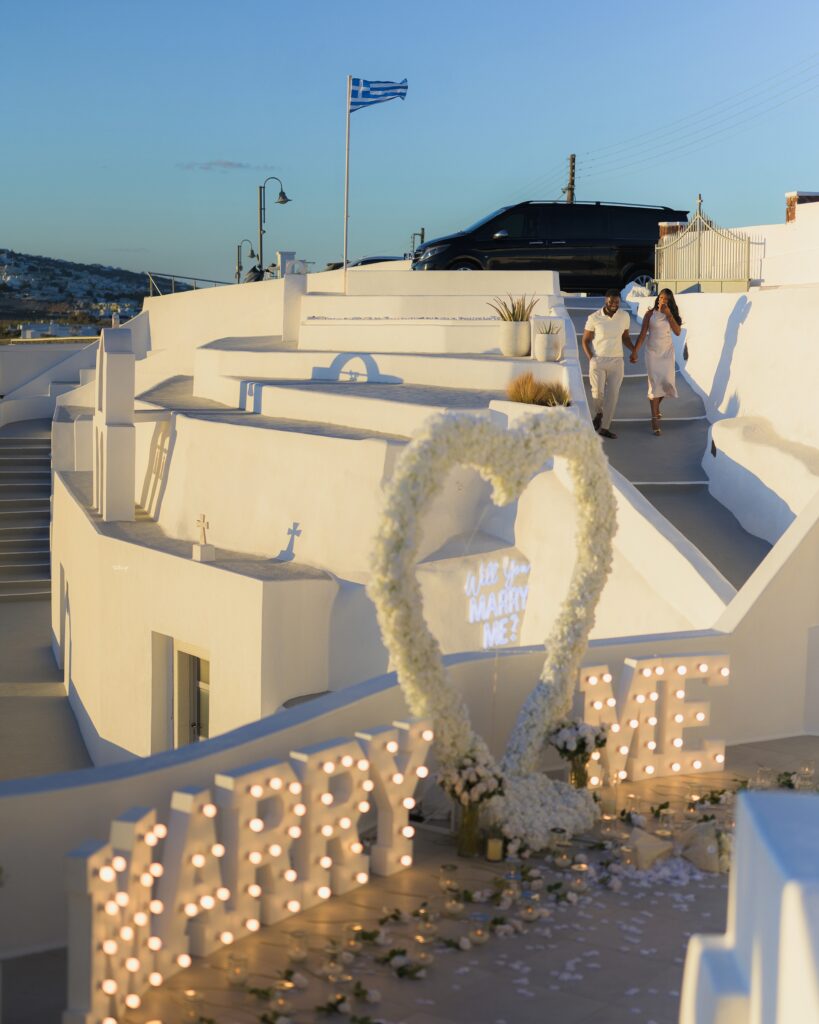 Saying ‘Yes’ to the love of your life is a sweet feeling… even sweeter when you say it while overlooking the picturesque city of Santorini! Stephanie and Jermaine’s white-themed #BNBling was nothing short of magical. Amidst beautiful flowers, candles, and the enchanting backdrop of clear blue skies, Jermaine went down on one knee and asked Stephanie to marry