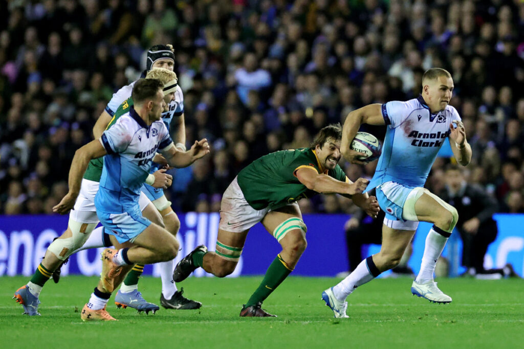 Eben Etzebeth reels in Scotland star Duhan van der Merwe in an incredible feat of speed and strength that typified the Springbok defence in a four-tries-to-nil win at Murrayfield.