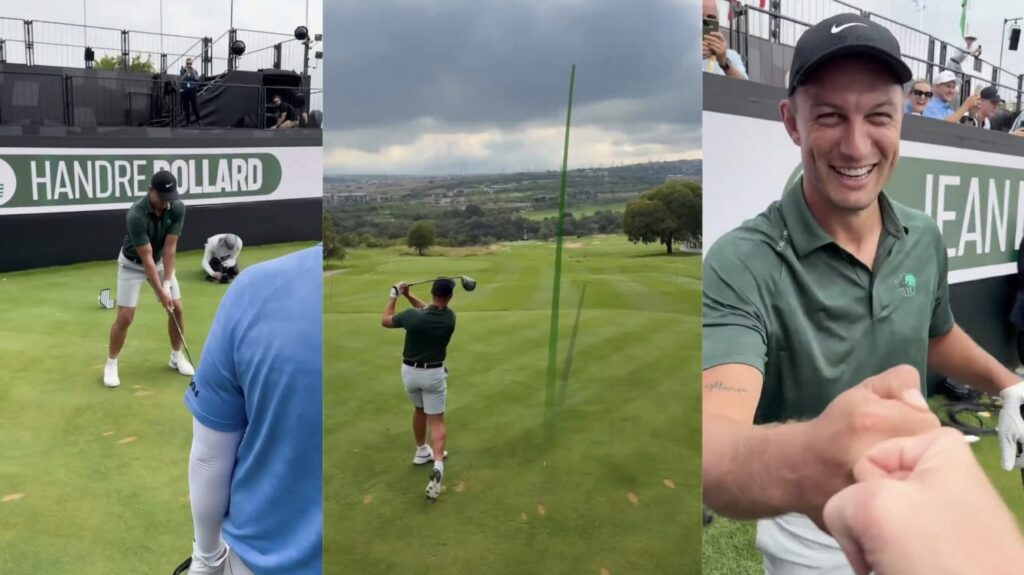 Handre Pollard with a ROCKET off the 1st tee at @livgolf_league South Africa