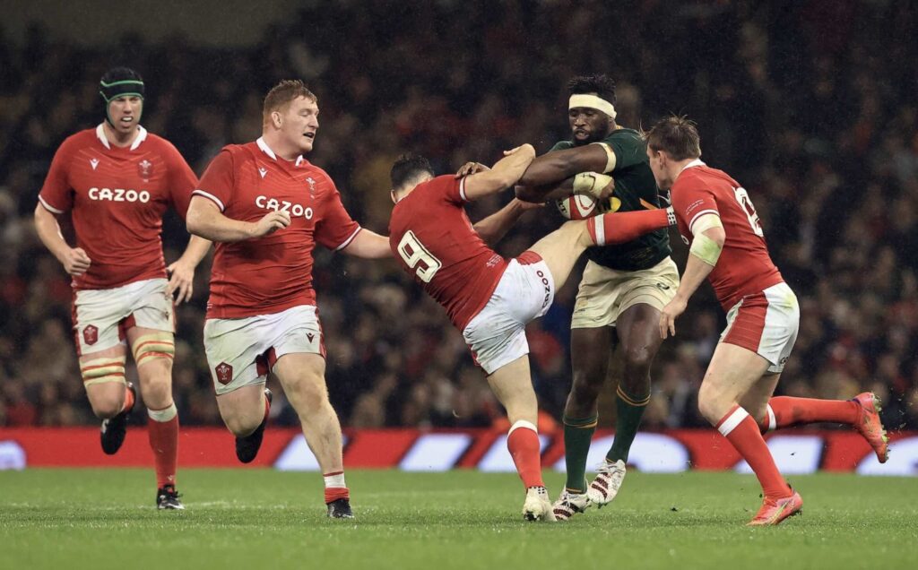 Flashback to when Wales scrumhalf Tomos Williams tried to tackle Springbok captain Siya Kolisi in 2021.