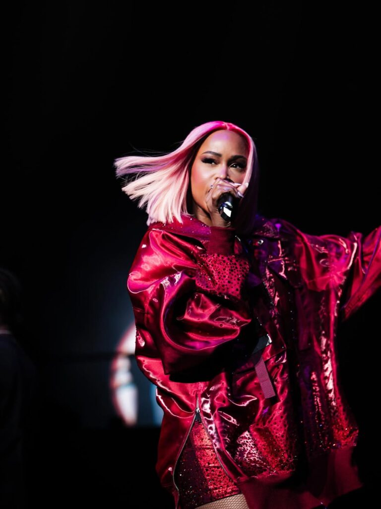 Eve made her entrance through the Spirit Tunnel with the calm authority of someone who’s been rewriting the rules of hip-hop for decades. The hallway, lined with the show’s staff, became her runway as she navigated it with a mix of strut and quick pivots, acknowledging the team on either side with nods and wide smiles. By the time she reached the double doors onto the main stage, the crowd was already in step with her.